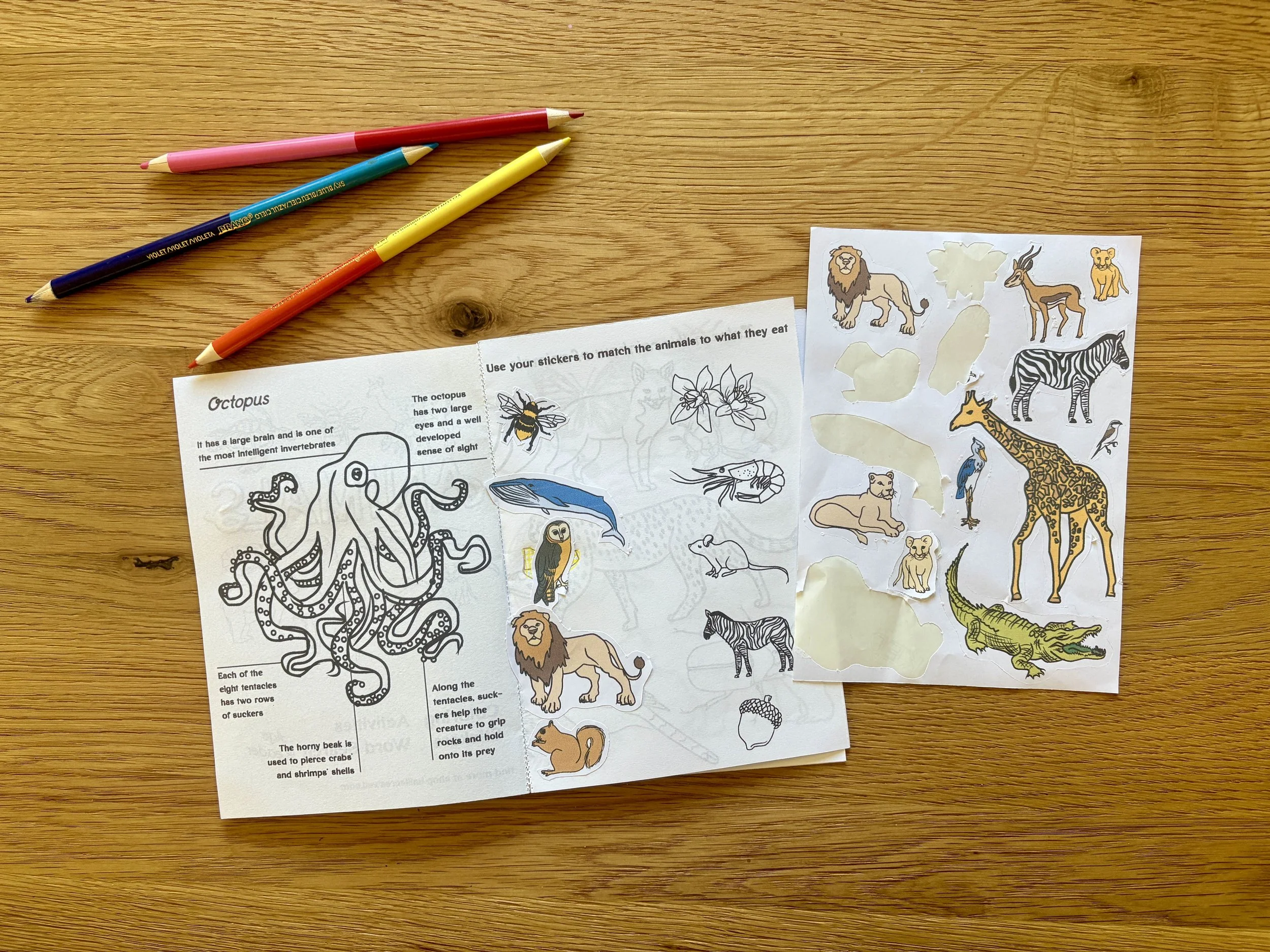 Have you ever needed a simple, thoughtful activity that will keep your kid interested and busy? Have you ever bought a coloring book and stickers that come in the same pack but have nothing to do with one another?